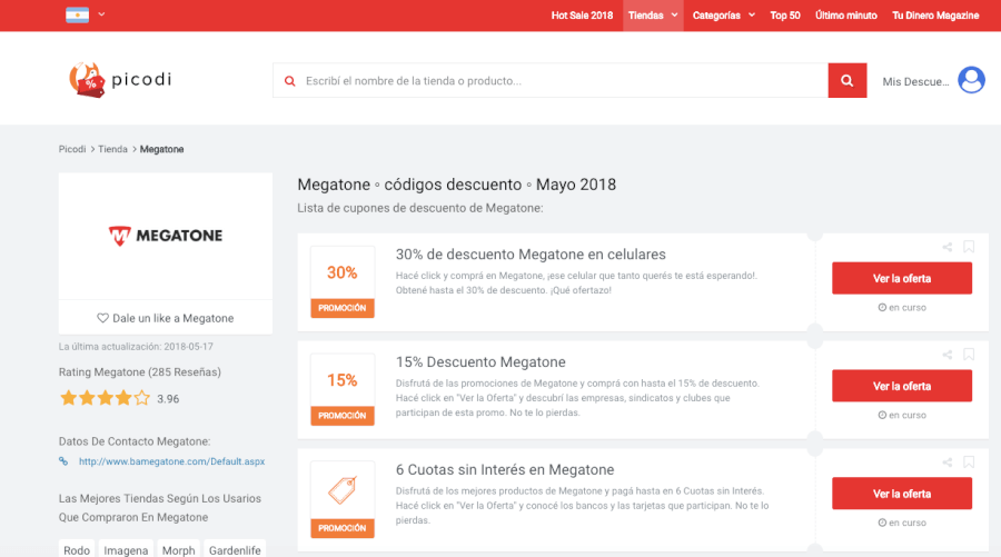 Todos los codigos de descuento y ofertas de Megatone son cuidadosamente verificados por el equipo de Picodi Argentina. ¡Selecciona uno, ve a Megatone y ahorra dinero en tu compra!