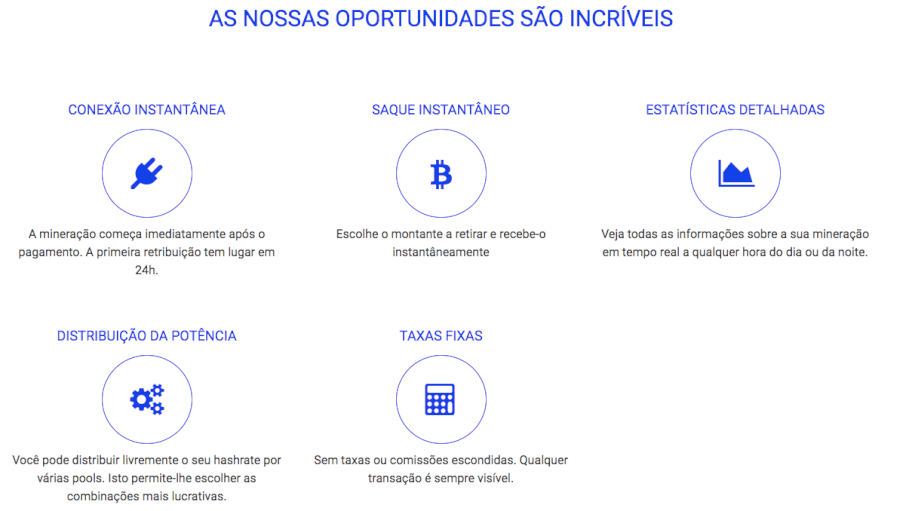 Abrindo uma conta no serviço da mineração na nuvem, você compra o poder de computação remota que serve para extrair a moeda, e depois, recebe a quantidade extraída em sua conta privada na Hashflare. Assim, você diminui os custos energéticos e elimina os gastos relacionados com a compra do equipamento. O centro de dados na Hashflare é capaz de armazenar centenas de mineradoras ligadas às várias pools (piscinas) que você pode acessar sendo um usuário da plataforma. Assim, você tem possibilidade de escolher os pools que você deseja se juntar. Qual é a vantagem? Você tem controlo sobre o processo da mineração e tem possibilidade de encontrar as combinações mais benéficas. Qual é o lucro? Fique tranquilo - todas as moedas extraídas são distribuídas entre os usuários da Hashflare de acordo com a sua participação (hashrate).