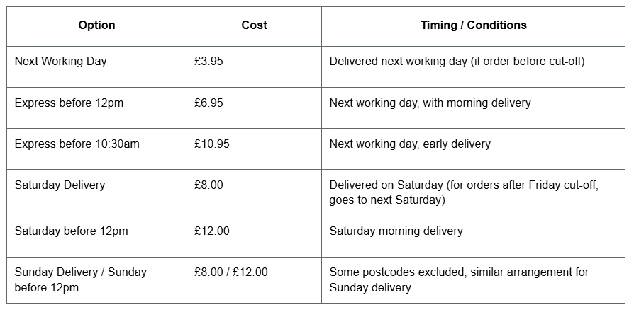 Orders placed after 2pm (UK time) are dispatched the next working day.